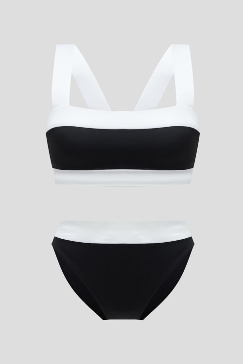 Детали: Женский черно-белый раздельный купальник от Goldbergh (Голдберг). Тонкая чашка, несъемные и нерегулируемые бретели, логотип