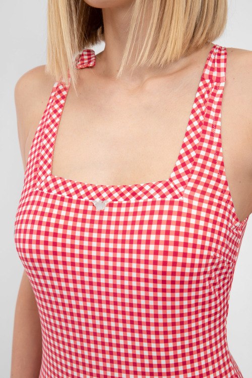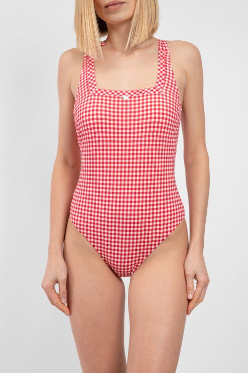 Детали: Женский красный купальник из полиамида и эластана от EA7 Emporio Armani (ЕА7 Эмпорио Армани). Слитная модель, открытая спинка, широкие бретели с регулировкой, логотип бренда