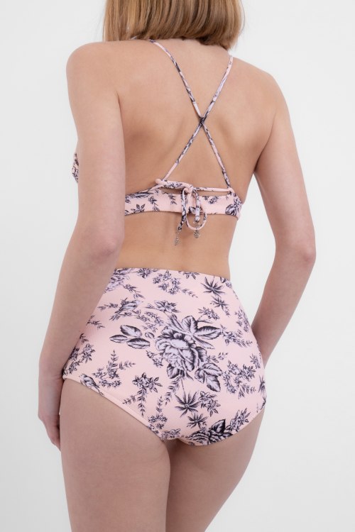 Детали: Женский пудровый раздельный купальник от Seafolly (Сиафолли). Мягкая чашка, тонкие перекрестные бретели, на спине без застежки, плавки хипстеры, цветочный принт
