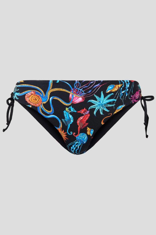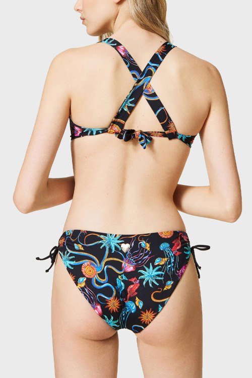 Детали: Женские черные плавки от TWINSET (Твинсет). Фасон слипы, по бокам завязки, цветной принт