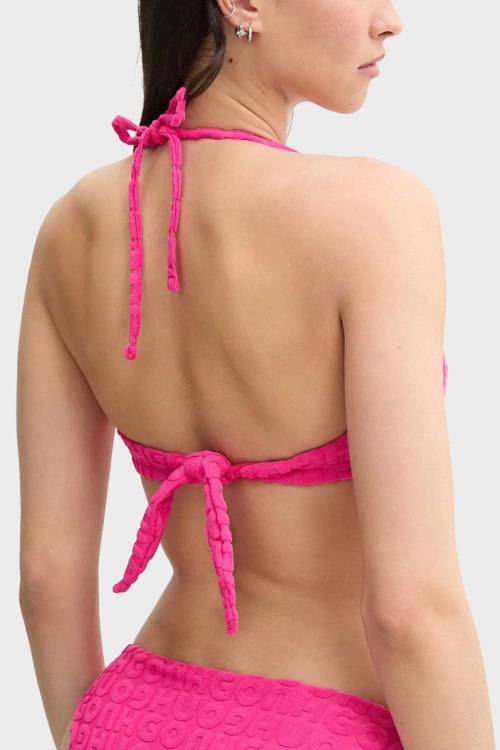 Детали: Женский розовый купальный лиф от Hugo by Hugo Boss (Хуго бай Хуго Босс). Логотип оп всей поверхности, съемные верхние бретели