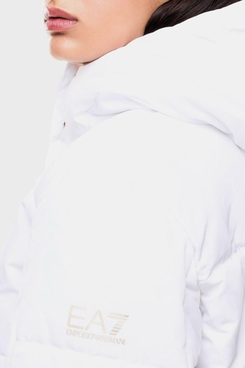 Детали: Женская белая куртка от EA7 Emporio Armani (ЕА7 Эмпорио Армани). Стеганый дизайн, вшитый капюшон, боковые карманы, скрытая застежка-молния, манжеты на резинке, классическая длина, легкий утеплитель