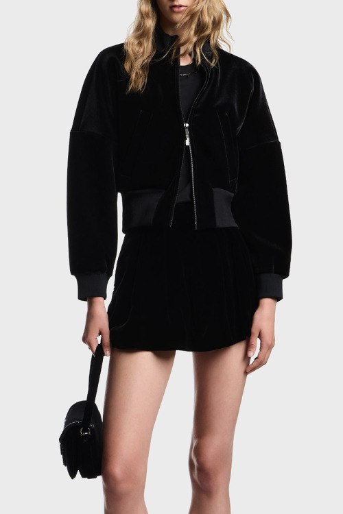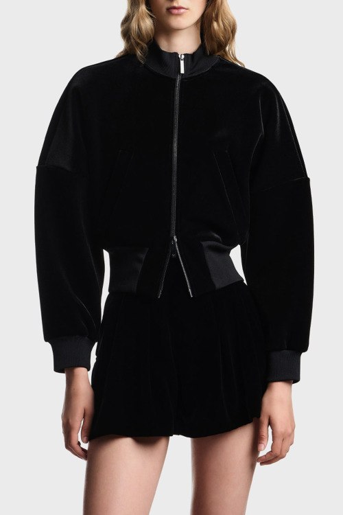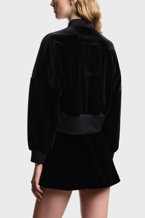 Детали: Женская черная куртка из полиэстера от Emporio Armani (Эмпорио Армани). Высокий воротник-стойка, застежка на молнию, объемные рукава, зауженный крой книзу
