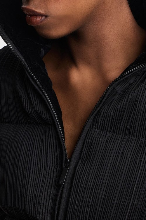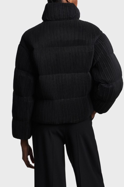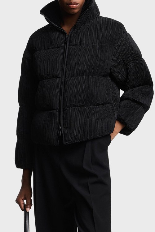 Детали: Женская черная куртка из полиэстера от Emporio Armani (Эмпорио Армани). Стеганый дизайн, высокий воротник-стойка, застежка на молнию, боковые карманы, утепенная синтепоном