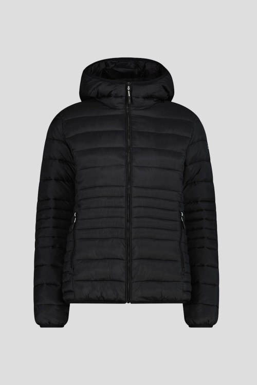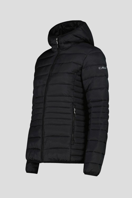Детали: Женская черная куртка из полиамида от CMP (СМП). Стеганый дизайн, застежка на молнию, вшитый капюшон, боковые карамны на молнии, логотип бренда, подкладка Sorona® Aura обеспечивает отличную теплоизоляцию и приятную мягкость
