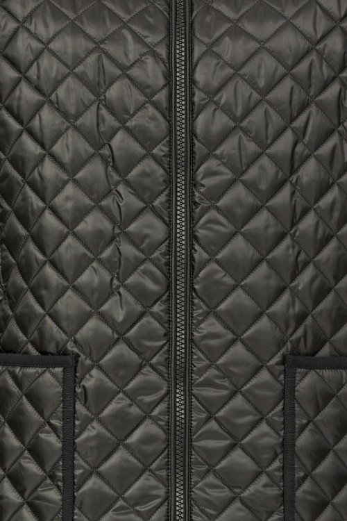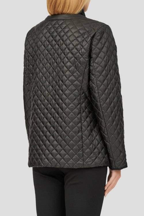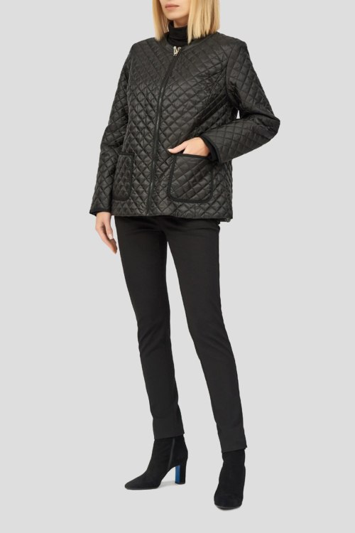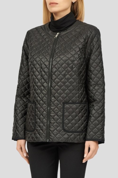 Женская черная куртка из полиэстера от Marina Rinaldi (Марина Ринальди). Стеганый дизайн, круглый вырез горловины, застежка на молнию, накладные карманы, модель утепленная синтепоном
