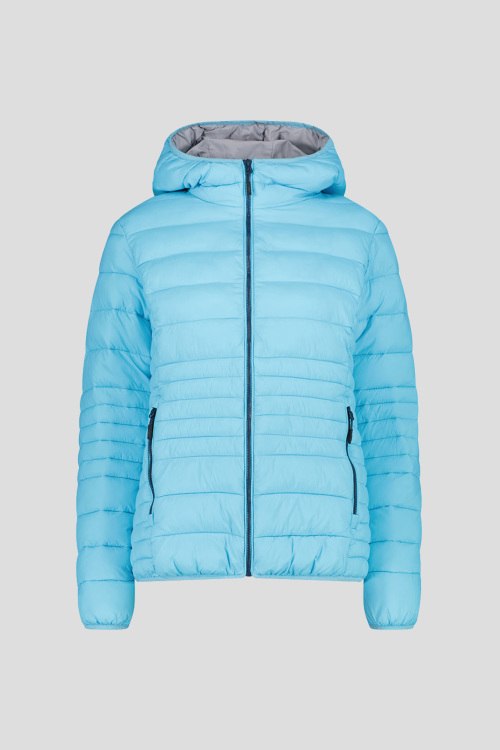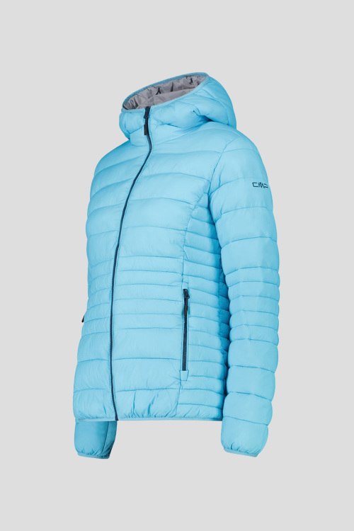 Детали: Женская голубая куртка из полиамида от CMP (СМП). Стеганый дизайн, застежка на молнию, вшитый капюшон, боковые карамны на молнии, логотип бренда, подкладка Sorona® Aura обеспечивает отличную теплоизоляцию и приятную мягкость