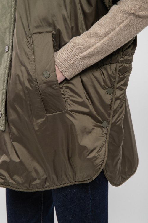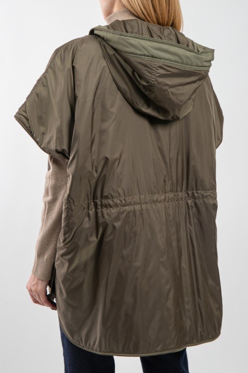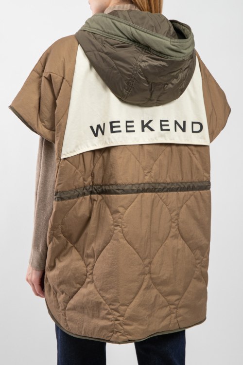 Женская куртка из полиэстера от Max Mara Weekend (Макс Мара Викенд). Двухсторонняя модель, короткие цельнокроеные рукава, съемный капюшон с кулиской, застежка на кнопки, прорезные карманы с клапаном, кулиска по линии талии.