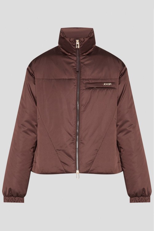 Детали: Женская темно-коричневая куртка Oksana от Joop! (Йооп!). Высокий воротник, три кармана, значок логотипа, застежка-молния, классическая длина. Длина рукава: длинный, для размера 38 - 63 см, обхват груди: для размера 38 - 112 см, обхват талии: для размера 38 - 112 см, длина изделия по среднему шву спинки от горловины: для размера 38 - 56 см