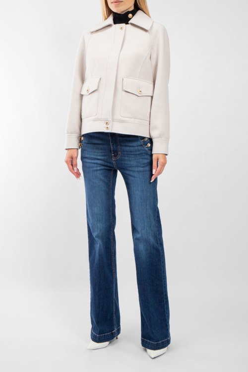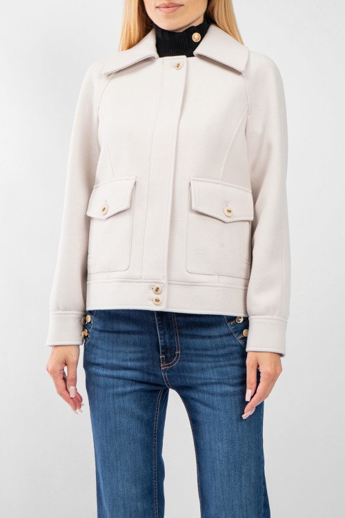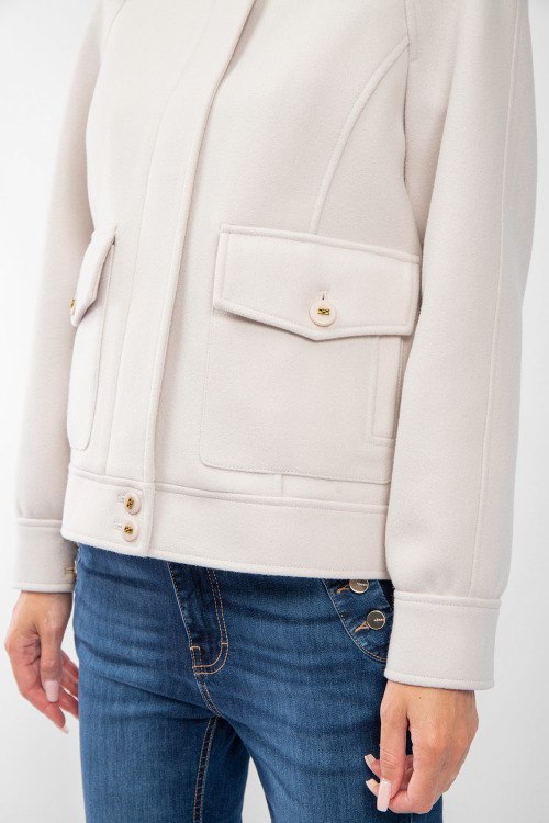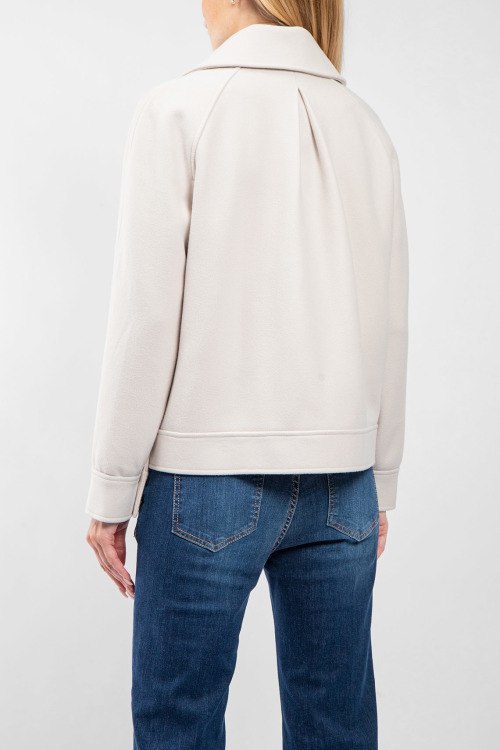 Женская куртка молочного оттенка с примесью шерсти от Kocca (Кокка). Отложной воротник, два накладных кармана, скрытая застежка, классическая длина.