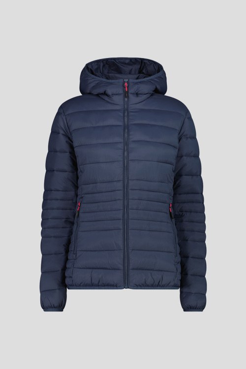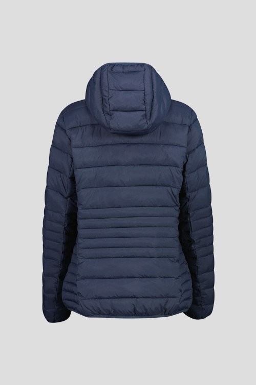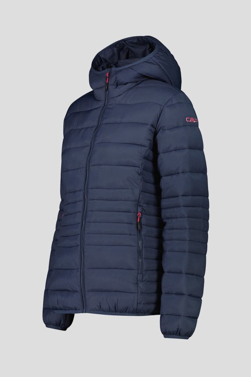 Детали: Женская темно-синяя куртка из полиамида от CMP (СМП). Стеганый дизайн, застежка на молнию, вшитый капюшон, боковые карамны на молнии, логотип бренда, подкладка Sorona® Aura обеспечивает отличную теплоизоляцию и приятную мягкость