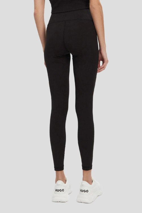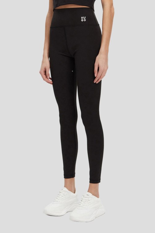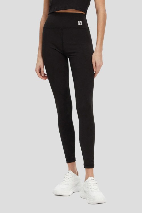 Детали: Женские черные эластичные леггинсы от Hugo by Hugo Boss (Хуго бай Хуго Босс). Высокая посадка, в поясе с логотипом, облегающий фасон