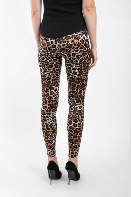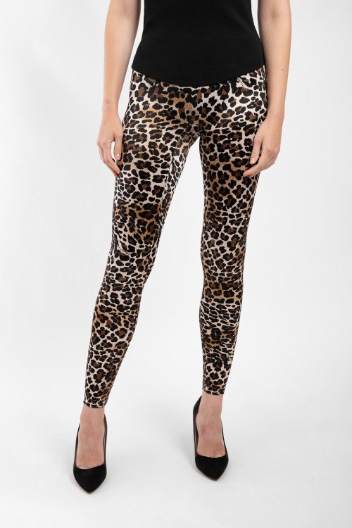 Женские коричневые леггинсы из полиамида и эластана от Elisabetta Franchi (Елизабетта Франчи). Высокая посадка, эластичная резинка на пояс с логотипом бренда, модель с леопардовым принтом, облегающий силуэт