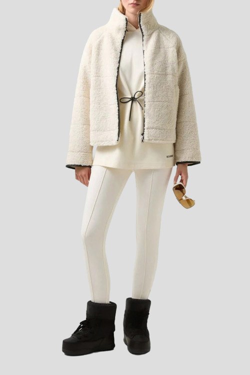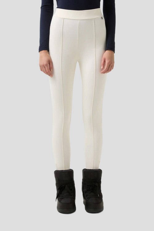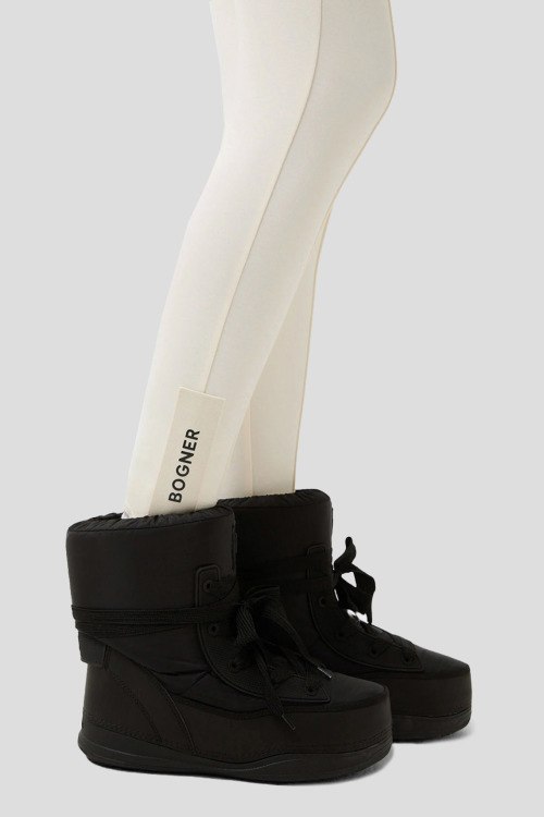 Детали: Женские кремовые трикотажные леггинсы Kaela от Bogner (Богнер). Эластичный пояс, значок логотипа, принт логотипа сбоку, облегающий фасон, полная длина