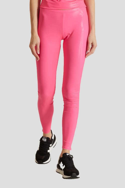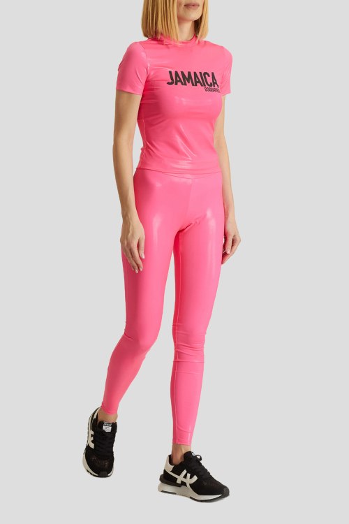 Женские розовые леггинсы Jamaica от Dsquared2 (Дискваред). Облегающий фасон, эластичный пояс, принт с логотипом сзади, полная длина.