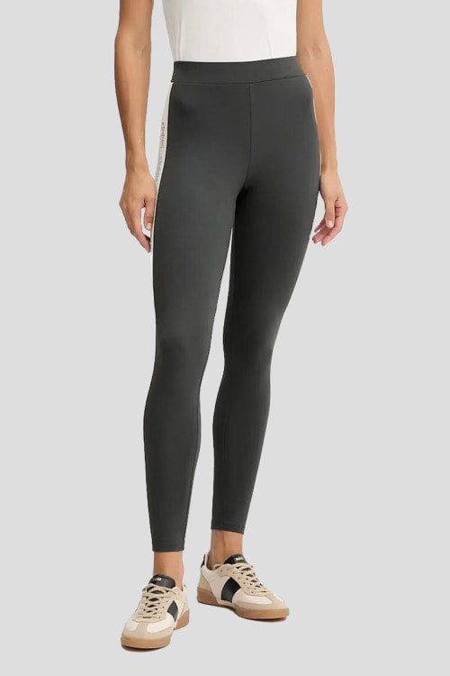 Детали: Женские темно-серые леггинсы из хлопкового микса Вasilio от Max Mara Weekend (Макс Мара Викенд). Облегающий фасон, эластичный пояс, лампасы по бокам, полная длина