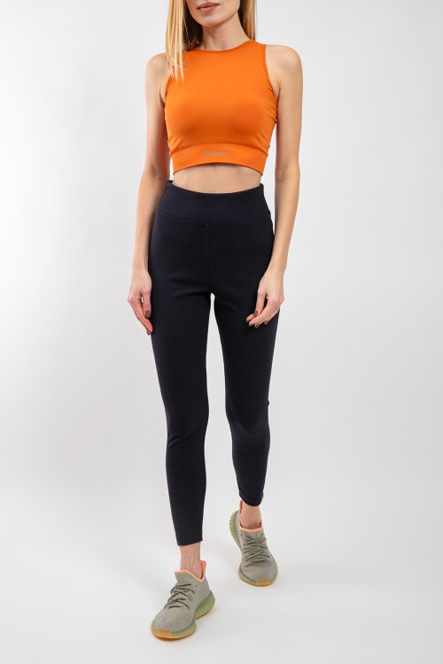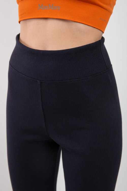 Женские темно-синие хлопковые леггинсы Circeo от Max Mara Leisure (Макс Мара Лэжэ). Облегающий фасон, дизайн в рубчик, высокая талия, нашивка с логотипом, полная длина.