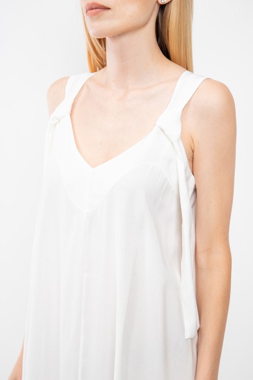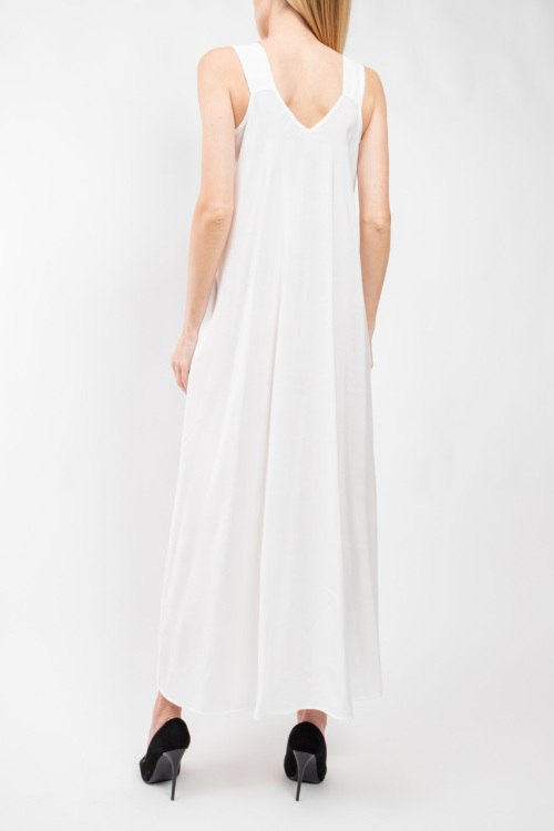 Женское белое платье из вискозы от Clothe (Клозе). Модель без рукавов, фасон oversize, бретели на завязках, боковые карманы, длина-макси. Размер вещи на фото: S, длина спереди: 127 см, ширина по груди: 49 см, ширина по талии: 60 см, ширина по бёдрам: 66 см.