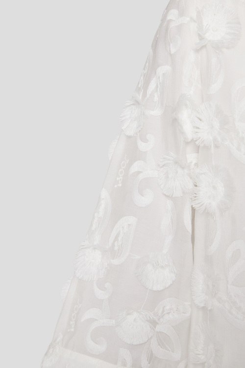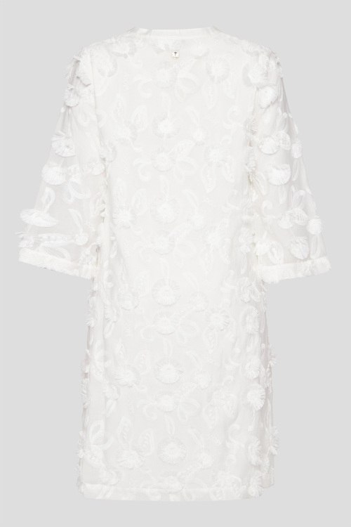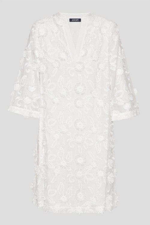 Детали: Женское белое платье из лайкры от Joop! (Йооп!). Цветочный узор с вышивкой, V-образный вырез, укороченный рукав. Длина рукава: короткий, для размера 34 - 44,5 см, обхват груди: для размера 34 - 94 см, обхват талии: для размера 34 - 100 см, обхват бедер: для размера 34 - 106 см, длина изделия по среднему шву спинки от горловины: для размера 34 - 94 см