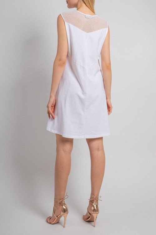 Женское белое хлопковое платье от Luna Di Giorno (Луна Ди Джорно). Модель выше колен, без рукавов, застегивается на пуговицы, на плечах вставки сеточки.