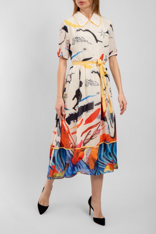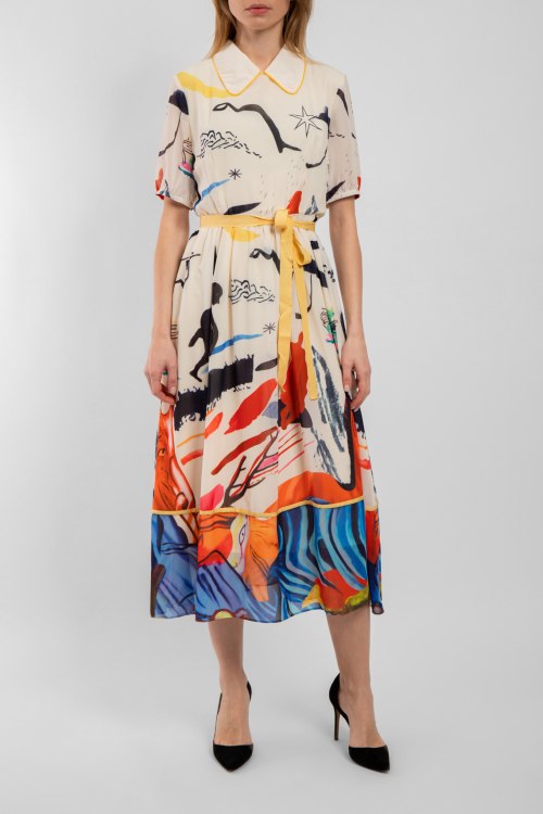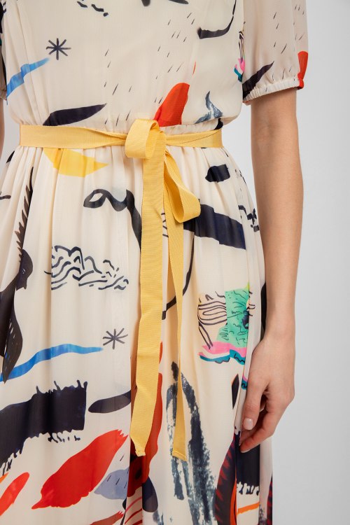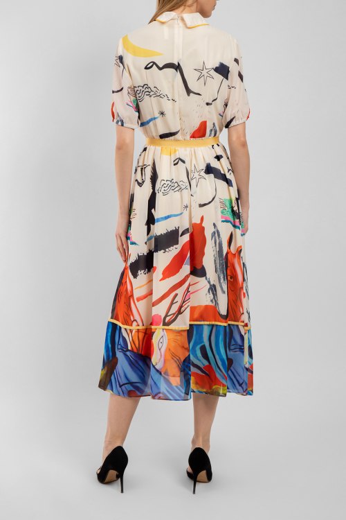 Детали: Женское бежевое платье из хлопкового микса от Buby S (Баби Эс). Длина миди, отложной воротник, короткие рукава, застежка-молния на спине, приталенный силуэт, расклешенная модель, дизайн с принтом, контрастный пояс. Размер вещи на фото L: длина: 90 см, ширина по груди: 47 см, ширина по талии : 38 см, ширина по бедрам: 52 см, длина рукава по внутреннему шву: 38 см, ширина рукава: 19 см, длина: 119 см, ширина по груди: 44 см, ширина по талии : 38 см, ширина по бедрам: 52 см, длина рукава по внутреннему шву: 12 см, ширина рукава: 18 см
