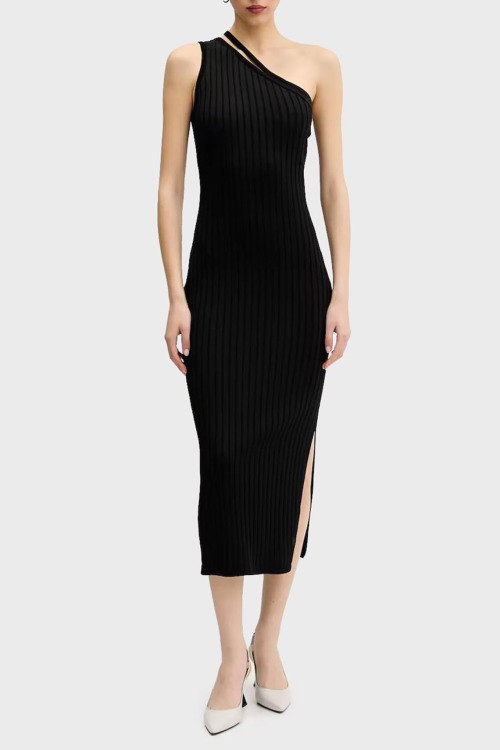 Детали: Женское черное трикотажное платье Sepinty от Hugo by Hugo Boss (Хуго бай Хуго Босс). Дизайн на одно плечо, облегающий фасон, разрез сбоку, длина-миди
