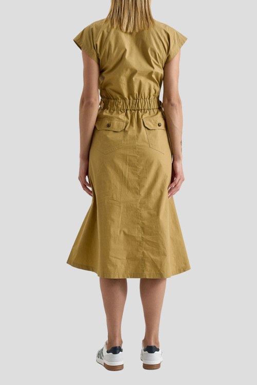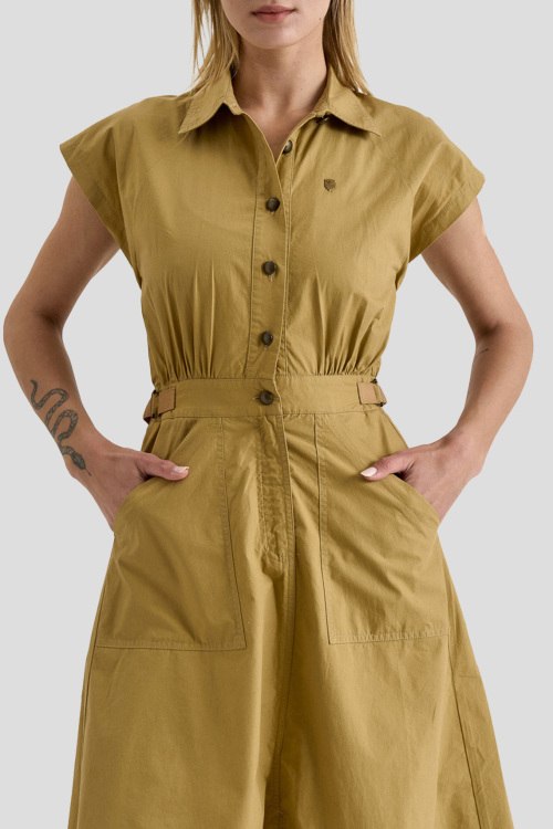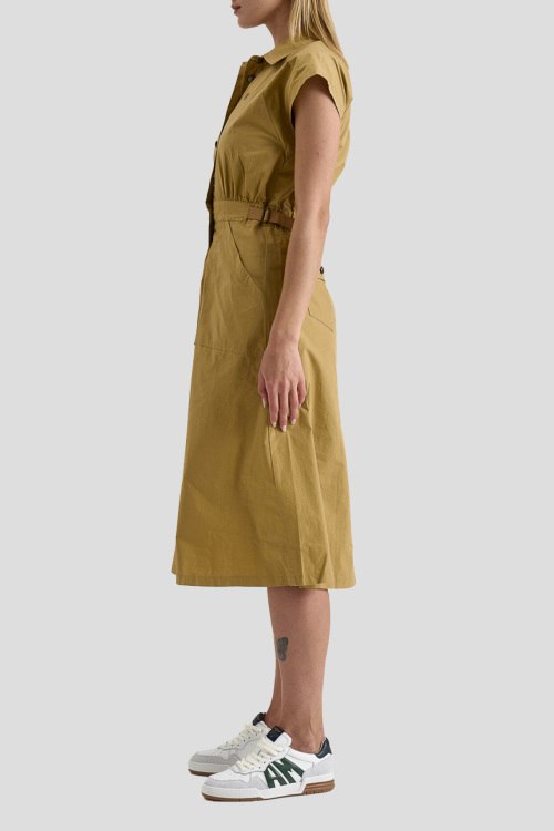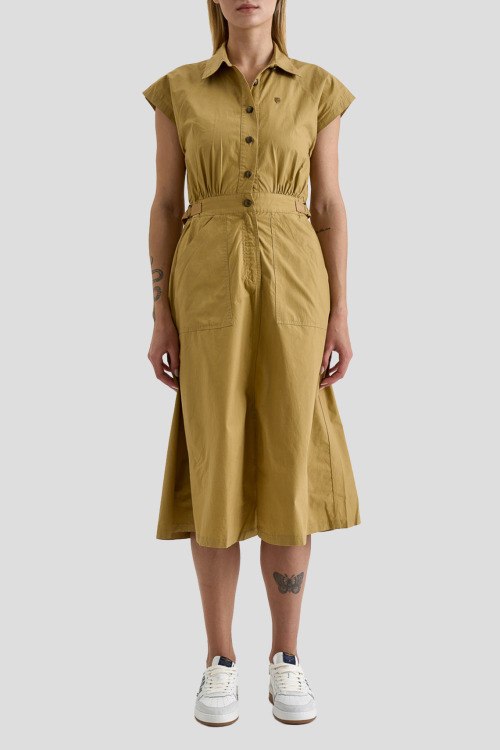 Детали: Женское горчичное хлопковое платье-рубашка от Aeronautica Militare (Аэронавтика Милитари). Отложной воротник, короткий рукав, боковые карманы, застежка на пуговицы, длина-миди