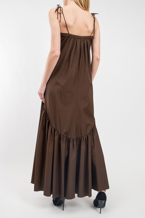 Женский темно-коричневый хлопковый сарафан Gerba от Max Mara Studio (Макс Мара Студио). Модель на тонких регулируемых бретельках, свободный фасон, длина-макси.