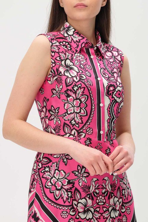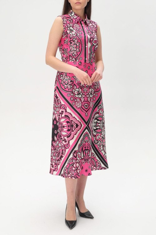 Детали: Женское розовое шелковое платье от Red Valentino (Ред Валентино). Модель без рукавов, цветочный принт, отложной воротник, застежка на пуговицы, длина-миди