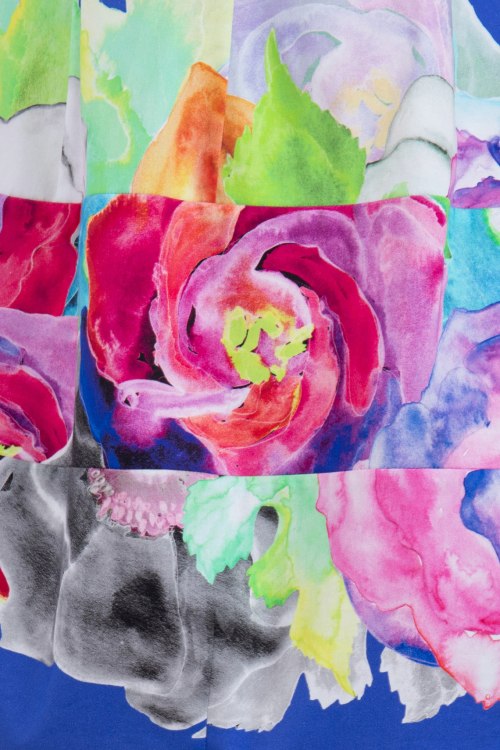Женское синее платье из хлопкового микса от Didier Parakian (Дидье Паракян). Длина выше колен, широкие бретели, асимметричный вырез горловины, завышенная линия талии, контрастный цветочный принт.