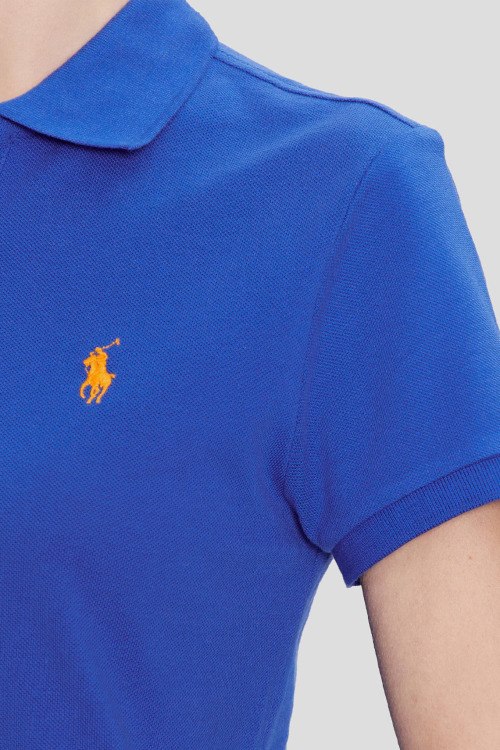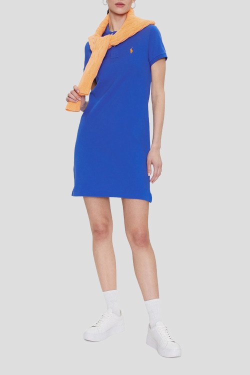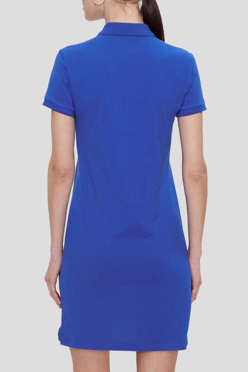 Детали: Женское синее хлопковое платье-поло от Polo Ralph Lauren (Поло Ральф Лорен). Вышитый логотип на груди, отложной воротник, застежка на две пуговицы, короткий рукав, короткая длина