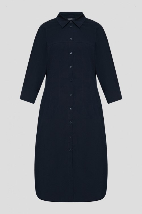 Детали: Женское темно-синее хлопковое платье-рубашка от Joop! (Йооп!). Отложной воротник, укороченный рукав, застежка на пуговицы, длина-миди. Длина рукава: 3/4, для размера 36 - 57 см, обхват груди: для размера 36 - 92 см, обхват талии: для размера 36 - 72 см, обхват бедер: для размера 36 - 108 см, длина изделия по среднему шву спинки от горловины: для размера 36 - 118 см