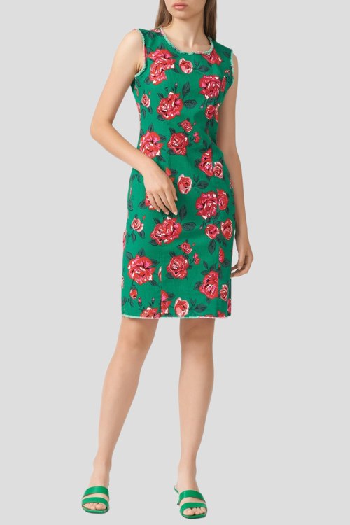 Детали: Женское зеленое джинсовое платье от Liu Jo (Лиу Джо). Модель без рукавов, цветочный принт по всей поверхности, круглый вырез горловины, длина до колен