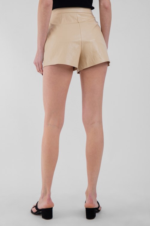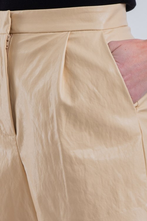 Женские бежевые шорты из микса хлопка от Pinko (Пинко). Короткая модель, среняя посадка пояса, застежка на молнию и крючок, два кармана, защипы.