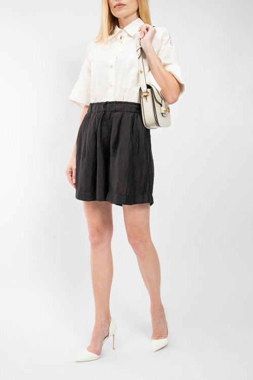 Женские черные льняные шорты от Deha (Деха). Эластичный пояс, боковые карманы, нашивка с логотипом сзади, короткая длина.