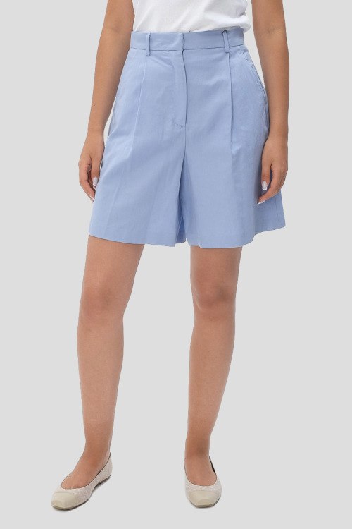 Детали: Женские голубые шорты из хлопка и льна Ecuba от Max Mara Weekend (Макс Мара Викенд). Высокая талия с петлями для ремня, боковые и задние карманы, свободный крой, длина выше колен