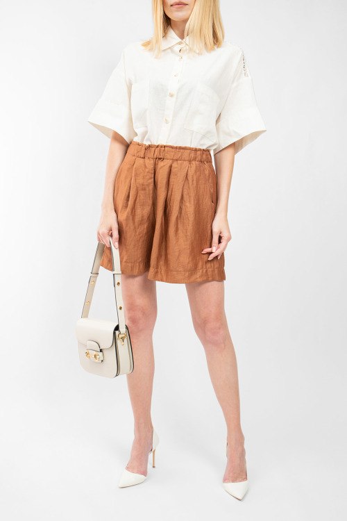Женские коричневые льняные шорты от Deha (Деха). Эластичный пояс, боковые карманы, нашивка с логотипом сзади, короткая длина.
