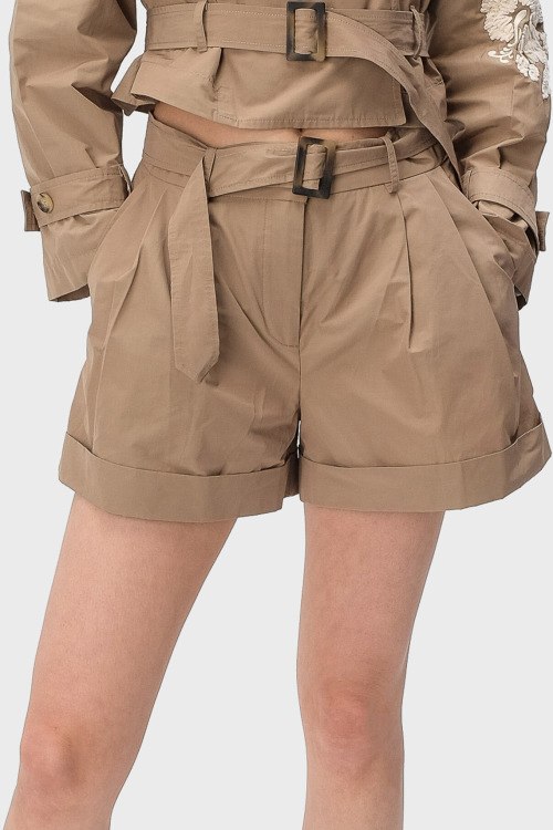Детали: Женские коричневые шорты из полиэстера и хлопка от Ermanno Ermanno Scervino (Эрманно Эрманно Шервино). Короткие рукава, высокая посадка, застежка на молнию и пуговицу, петли в поясе для ремня, пояс в тон изделия, прорезные карманы, модель с отворотом