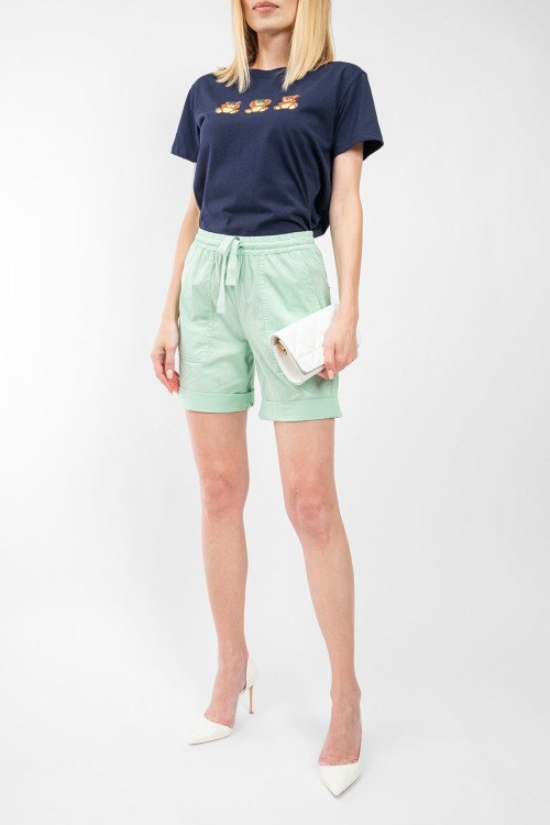 Женские мятные хлопковые шорты от Deha (Деха). Эластичный пояс на завязках, боковые и задние карманы, нашивка с логотипом сзади, короткая длина.