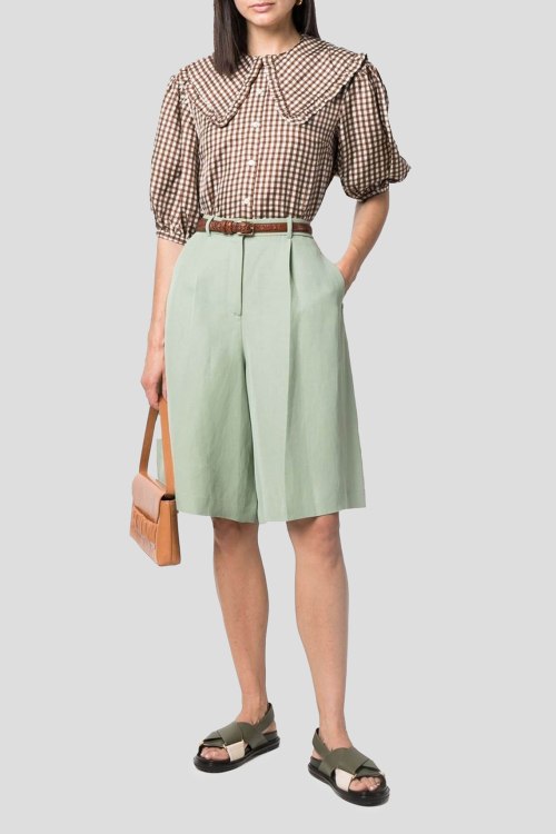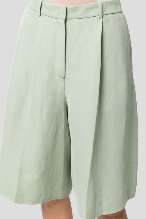 Детали: Женские мятные шорты-бермуды из вискозы и льна от Fabiana Filippi (Фабиана Филиппи). Завышенная талия с петлями для ремня, боковые карманы, широкий крой, длина до колен