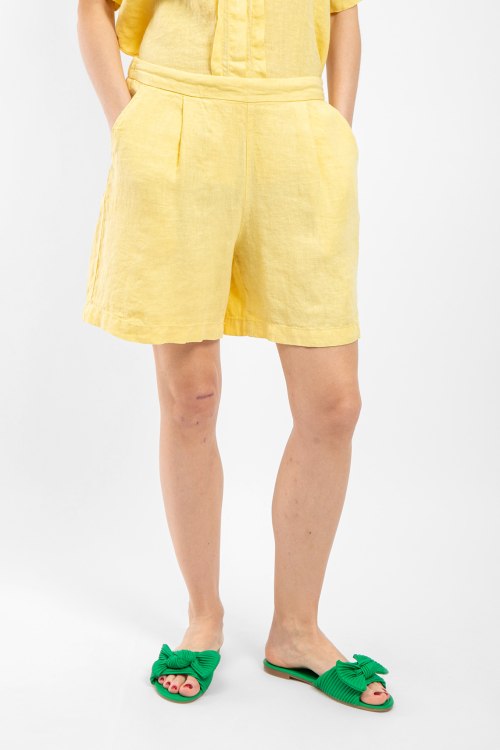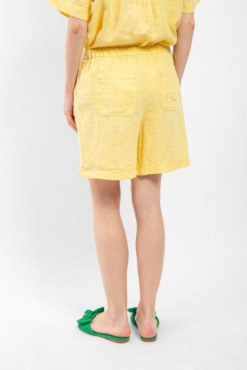 Детали: Женские желтые льняные шорты от Yerse (Йерс). Эластичный пояс, боковые и задние карманы, свободный фасон, длина выше колен
