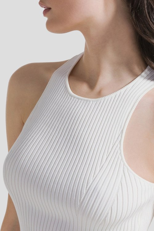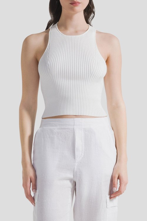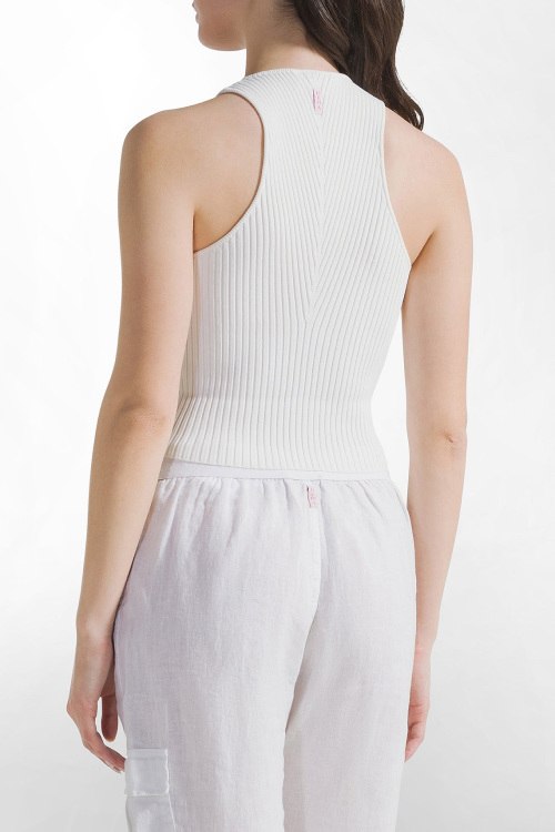 Детали: Женский белый трикотажный топ от Deha (Деха). Модель без рукавов, дизайн в рубчик, круглый вырез горловины, укороченная длина. Обхват груди: для размера S - 72 см, обхват талии: для размера S - 70 см, длина изделия по среднему шву спинки от горловины: для размера S - 43,5 см