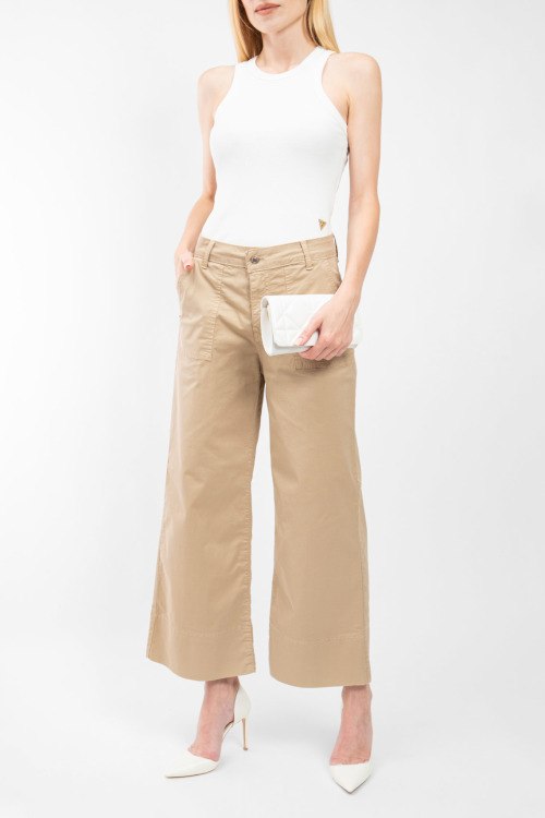 Женский белый топ из хлопка и вискозы от J.B4 Just Before (Джаст Бифо). Дизайн в рубчик, круглый вырез горловины, классическая длина.
