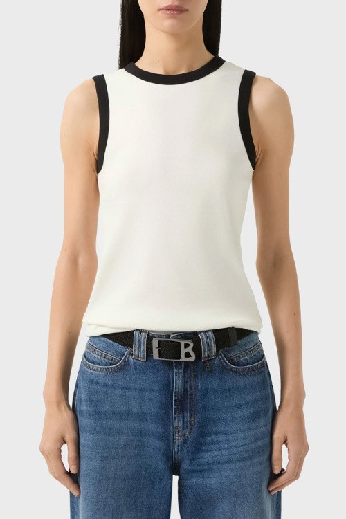 Детали: Женский черно-белый хлопковый топ Niki от Bogner (Богнер).Классическая длина, круглый вырез горловины, модель без рукавов, контрастная окантовка