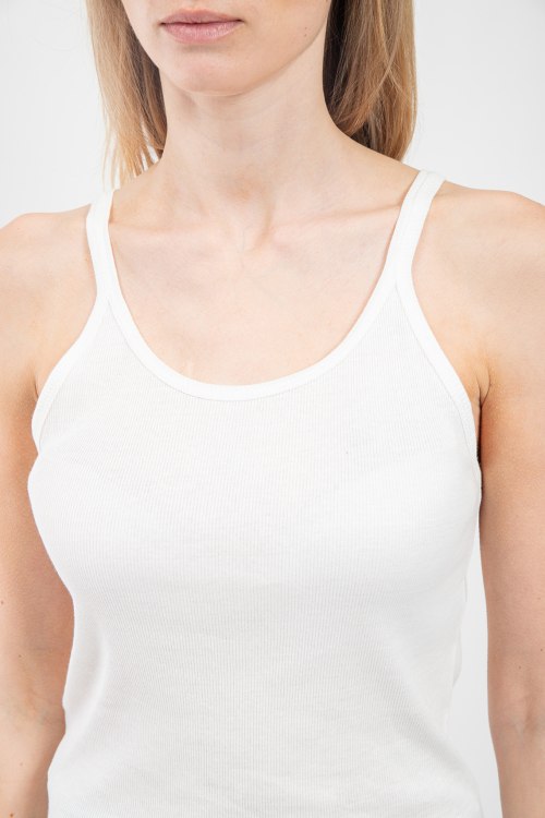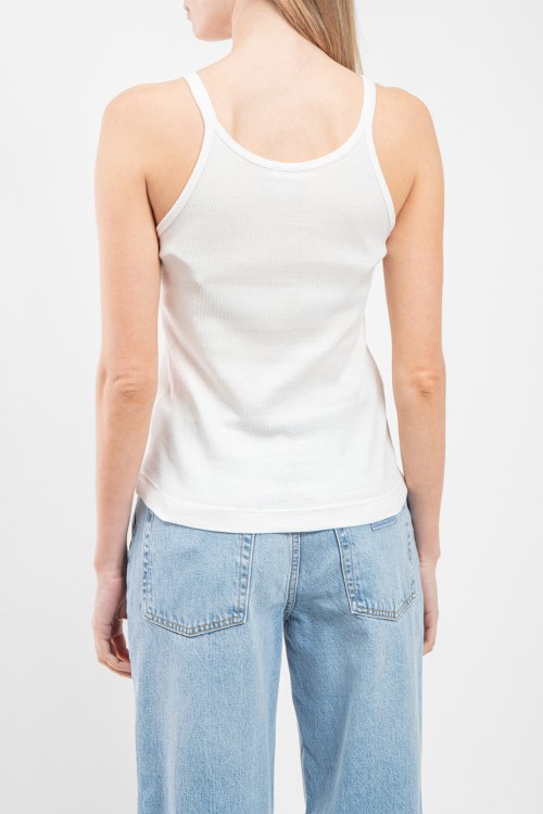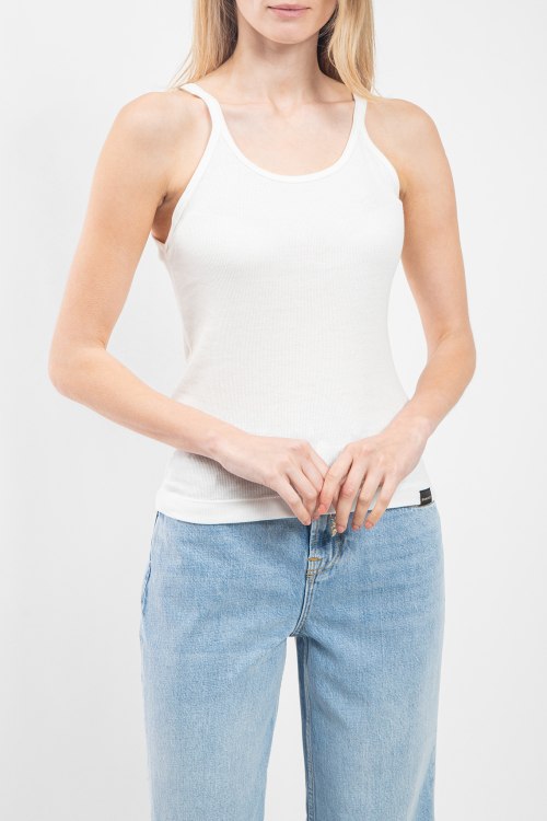 Детали: Женский белый хлопковый топ от Pinko (Пинко). Модель на бретельках, круглый вырез, нашивка с логотипом, классическая длина