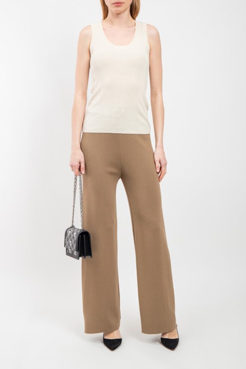Детали: Женский бежевый топ из вискозного микса от Max Mara Weekend (Макс Мара Викенд). Классическая длина, модель без рукавов, глубокий вырез горловины, дизайн в рубчик