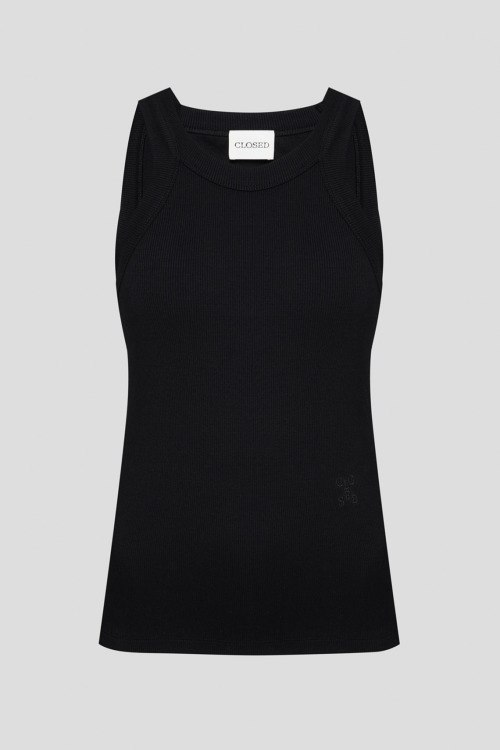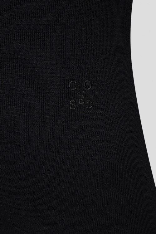 Детали: Женская черная хлопковая майка от Closed (Клоузед). Дизайн в рубчик, вышитый логотип, круглый вырез горловины. Обхват груди: для размера S - 76 см, обхват талии: для размера S - 70 см, длина изделия по среднему шву спинки от горловины: для размера S - 53 см