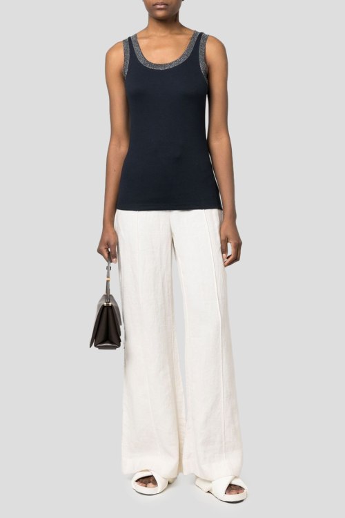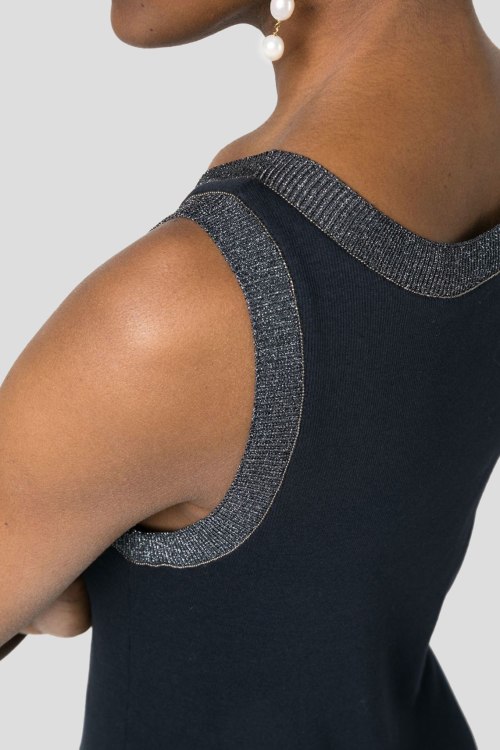 Детали: Женский черный хлопковый топ от Fabiana Filippi (Фабиана Филиппи). Декор люрексом, круглый вырез, классическая длина
