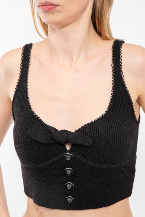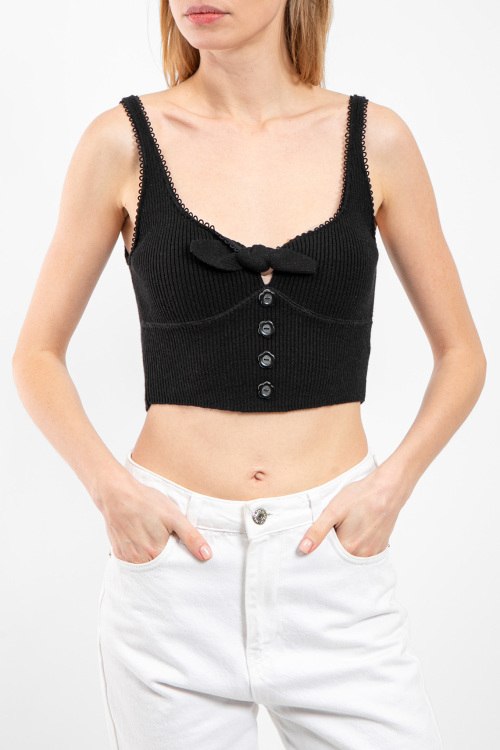 Детали: Женский черный трикотажный кроп-топ от For Love and Lemons (Фор Лав энд Лемонс). Модель без рукавов, дизайн в рубчик, декор бантиком, короткая длина. Размер вещи на фото:L. Замеры: длина: 40 см, ширина по груди: 30,5 см