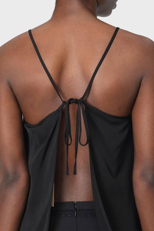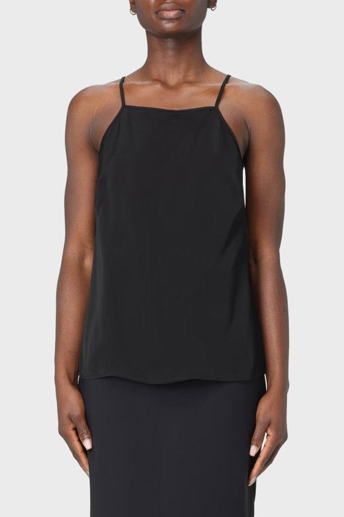 Детали: Женский черный топ из вискозы от TWINSET (Твинсет). Модель на тонких бретельках, открытая спинка, классическая длина